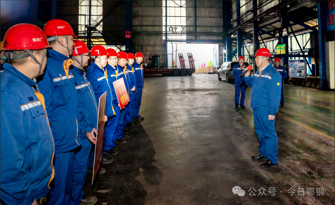 1月17日,鄂城鋼鐵公司領(lǐng)導(dǎo)陸隆文、曾撼宇來(lái)到煉鐵廠2#高爐爐臺(tái)為煉鐵廠全體干部職工送來(lái)高爐檢修提前竣工順利達(dá)產(chǎn)喜報(bào)和獎(jiǎng)勵(lì),鼓勵(lì)大家再接再厲,一鼓作氣,堅(jiān)持以鐵成本為核心,以高爐順行為關(guān)鍵,不斷追求極致高效率、極致高效益、極致低成本,以優(yōu)異業(yè)績(jī)?yōu)楣巨D(zhuǎn)型升級(jí)助推高質(zhì)量發(fā)展再做新貢獻(xiàn)。
