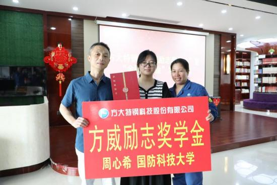 “再過十幾天我將走進國防科技大學的校門,開始新的學習生活。感恩父母養育和教誨的同時,也要感謝遼寧方大集團為我提供了一筆不菲的獎學金。接下來,我將帶著大家的期望和鼓勵,帶著自己的夢想和決心,努力學習,奮發向前,爭取在科技的道路上走得更遠,為祖國的繁榮昌盛作出更大的貢獻。”“方威勵志獎學金”獲得者,方大特鋼員工周立強、施建秀的女兒周心希由衷地說,目光中透著堅定。