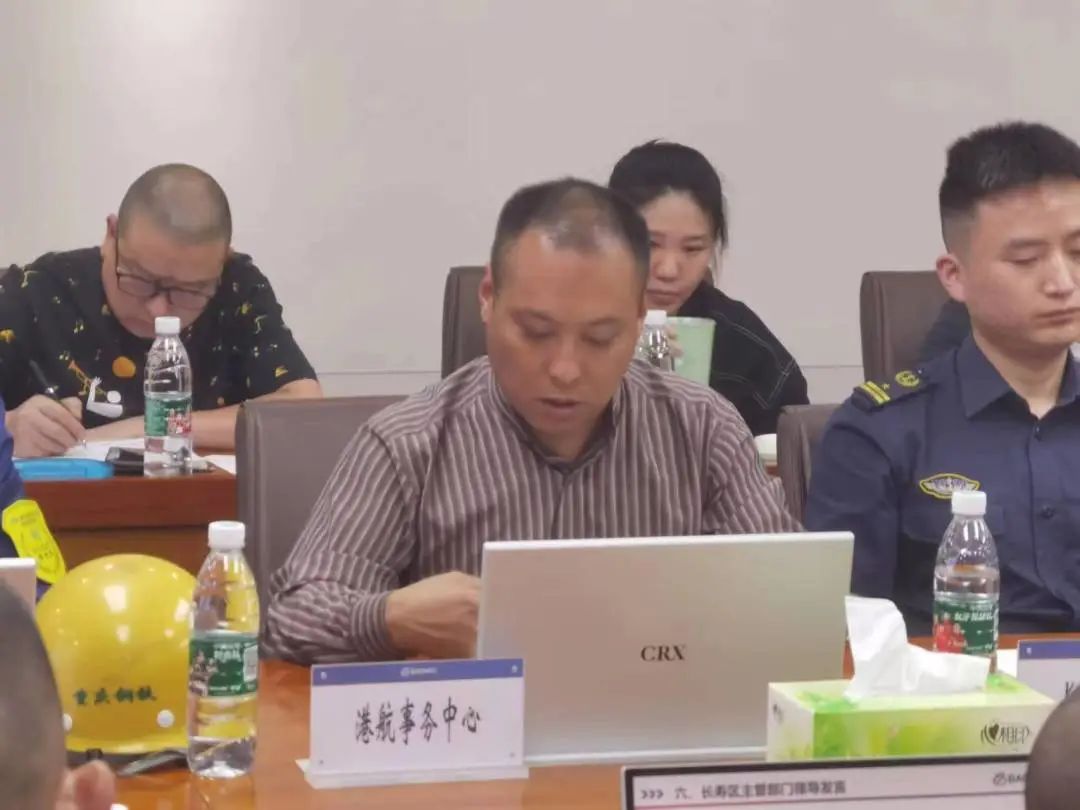 長壽區海事處、港行事務中心、重慶鋼鐵物流運輸部在安全防汛會議會上布置防汛工作