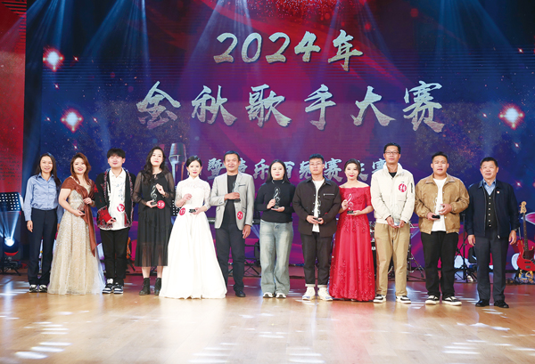 圖為2024金秋歌手大賽暨聲樂百冠賽決賽十佳歌手上臺(tái)領(lǐng)獎(jiǎng)。