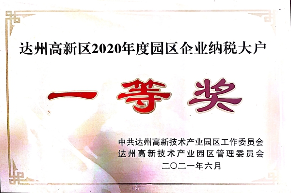 6月28日,達州高新區召開2020年度重點納稅企業表揚大會,對園區17家企業納稅大戶進行獎勵,四川達興能源有限責任公司榮獲達州高新區2020年度園區企業納稅大戶一等獎,獲得高新區管委會100000元獎金。