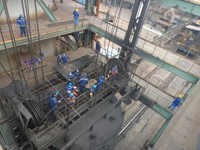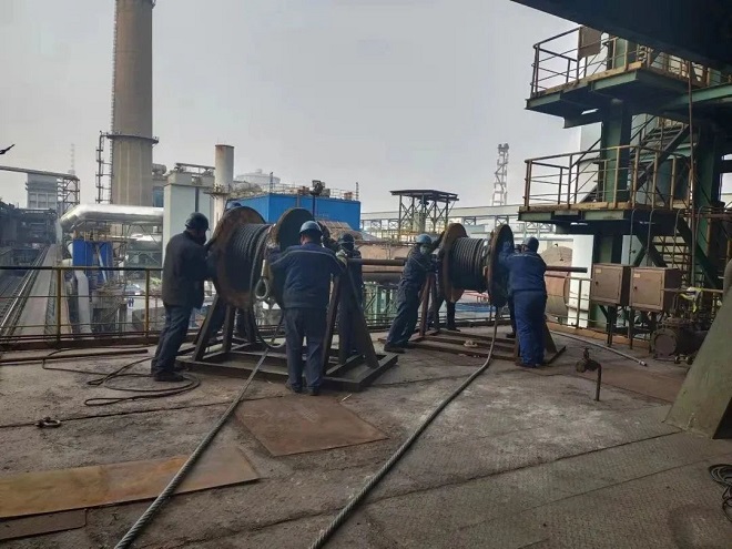 春節(jié)期間,中國五冶集團唐山西山焦化作業(yè)部1#干熄焦焦罐提升機鋼絲繩出現(xiàn)斷絲現(xiàn)象,經(jīng)焦化部領(lǐng)導(dǎo)研究決定安排16小時對提升機鋼絲繩進行更換檢修,來消除生產(chǎn)隱患。