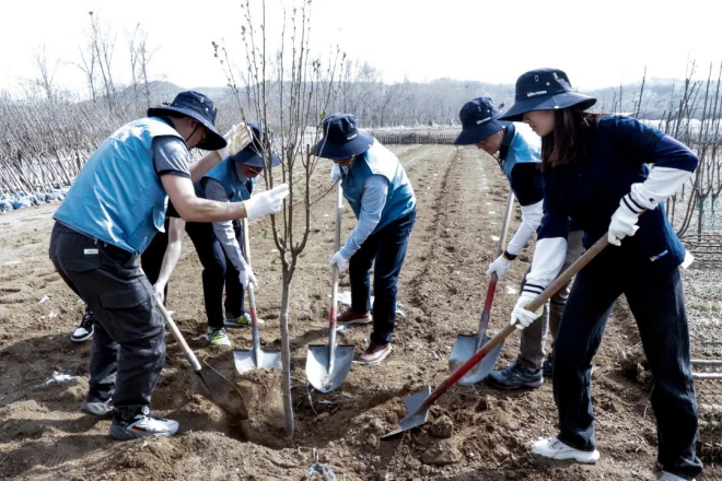 為紀念POSCO創立55周年,2023年3月31日,POSCO北京地區各法人于北京懷柔林下植樹基地聯合開展POSCO Green Day浦項林植樹活動。