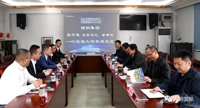 4月29日,酒鋼集團(tuán)黨委書(shū)記、董事長(zhǎng)程子建,酒鋼集團(tuán)市場(chǎng)營(yíng)銷(xiāo)部總經(jīng)理周彪,集團(tuán)辦文秘室副經(jīng)理李祁峰,華東酒鋼銷(xiāo)售公司總經(jīng)理王洪園一行到訪大明。