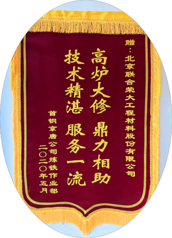 首鋼京唐公司煉鐵作業部贈予聯合榮大錦旗