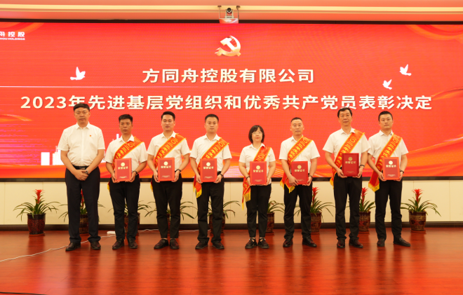 表彰大會在莊嚴的國歌聲中開幕。魏考增宣讀了《關于方同舟控股有限公司2023年度先進基層黨組織和優秀共產黨員表彰的決定》。此次共表彰先進基層黨組織6個;優秀共產黨員36名。受表彰的優秀共產黨員,他們是技術攻關研發人員、生產一線骨干人員、部門基層管理人員,他們在各自崗位兢兢業業、盡職盡責,成為廣大黨員、職工學習的榜樣。