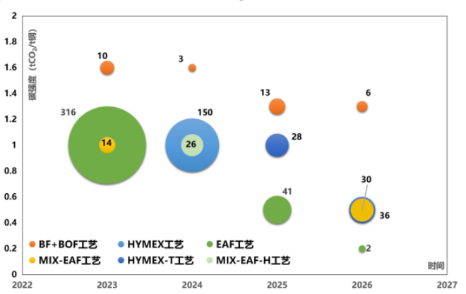 ■一是六種工藝組合協(xié)同推進(jìn),包括高爐轉(zhuǎn)爐長流程工藝(BF+BOF)、氫冶金電爐工藝(HYMEX)、全廢鋼電爐工藝(EAF)、混合電爐工藝(MIX-EAF)、氫冶金電爐生產(chǎn)汽車板組合工藝(HYMEX-T)和混合電爐生產(chǎn)汽車板組合工藝(MIX-EAF-H)。