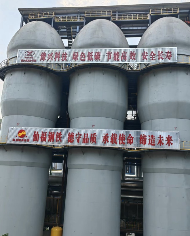 談到仙福鋼鐵為何在高爐改造中鐘情豫興熱風爐,李峰說,基于豫興熱風爐具備風溫高,結(jié)構(gòu)穩(wěn)定長壽,氮氧化物排放低等特點,以董事長李明炮、總經(jīng)理李枝官、副總經(jīng)理李發(fā)生領(lǐng)軍的公司領(lǐng)導班子決定將熱風爐單獨明確出來,采用豫興懸鏈線頂燃式熱風爐及其技術(shù),熱風爐區(qū)域內(nèi)所有設(shè)計包括土建鋼結(jié)構(gòu),液壓系統(tǒng),三電系統(tǒng),給排水系統(tǒng)等均由豫興提供,工藝布置和熱風爐本體及管道設(shè)計與高爐總包方進行對接。