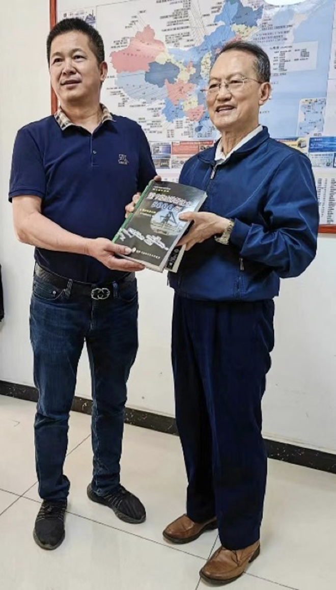 采訪結(jié)束后,記者夏杰生代表中國冶金報社向仙福鋼鐵煉鐵廠贈送本社編輯出版的大型冶金科普圖書《鋼鐵工業(yè)節(jié)能減排新技術(shù)5000問》。(左)為仙福鋼鐵煉鐵廠常務(wù)副廠長李風寶。(周紅朝攝影)