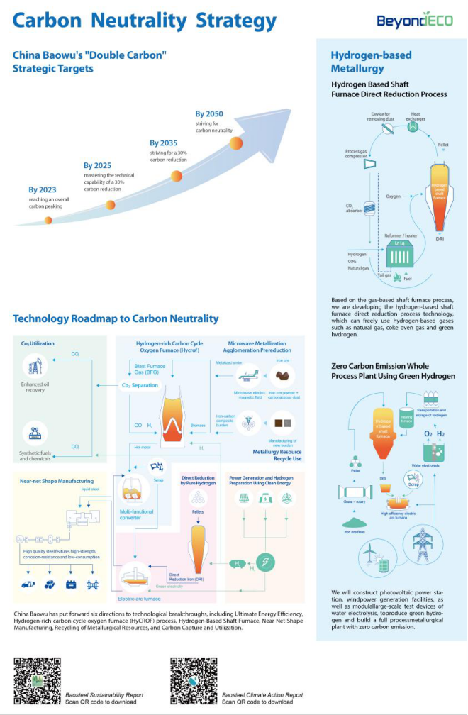 “雙碳”是寶鋼股份可持續(xù)發(fā)展的動(dòng)力,綠色是寶鋼高質(zhì)量發(fā)展的底色,為此寶鋼股份制定了“2023年實(shí)現(xiàn)碳達(dá)峰,2050年實(shí)現(xiàn)碳中和”低碳戰(zhàn)略目標(biāo)和技術(shù)路線圖。寶鋼硅鋼BeCOREs?不僅為電機(jī)和變壓器行業(yè)綠色轉(zhuǎn)型提供“芯”動(dòng)能,更致力于打造綠色低碳的硅鋼原材料。2024年3月,隨著國內(nèi)首批量產(chǎn)供貨的低碳排放硅鋼BeyondECO?-30%系列取向硅鋼、無取向硅鋼產(chǎn)品在寶鋼股份硅鋼事業(yè)部正式下線,標(biāo)志著寶鋼股份在長流程制造減碳的又一次成功探索。