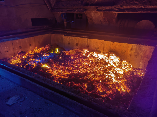 改造后的悶渣池悶渣時間縮短,熱悶后的鋼渣?;Ч?、含水率低,完全滿足后續(xù)二次生產(chǎn)線破碎磁選的生產(chǎn)要求,整個悶渣過程全流程實現(xiàn)自動化控制一鍵悶渣。