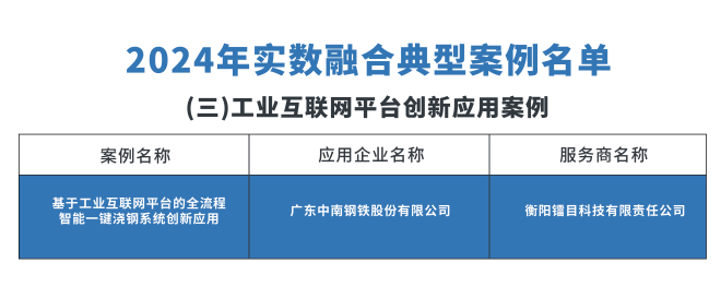 近日,工業(yè)和信息化部發(fā)布了關(guān)于2024年實(shí)數(shù)融合典型案例名單的公示。 鐳目科技潛心研發(fā)并應(yīng)用于廣東中南鋼鐵股份有限公司(原韶關(guān)鋼鐵公司,下文簡稱中南鋼鐵)的“全流程智能一鍵澆鋼系統(tǒng)”成功入選“智能化制造”方向典型案例。