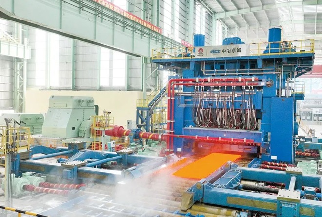 2024年10月31日,由中冶京誠工程技術(shù)有限公司(以下簡稱中冶京誠)自主設(shè)計供貨的全球最寬厚板軋機——周口鋼鐵5600毫米寬厚板粗軋機熱負荷試車,軋制出第一塊寬厚板,這是全球鋼鐵極限制造領(lǐng)域的又一次成功跨越,標志著世界寬厚板軋機邁入5600毫米新時代。