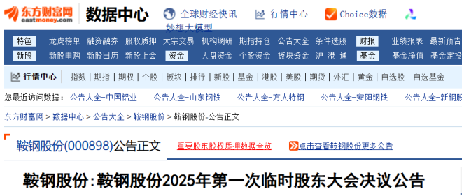 3月13日,鞍鋼股份發布了《鞍鋼股份:鞍鋼股份2025年第一次臨時股東大會決議公告》(以下簡稱《公告》)。