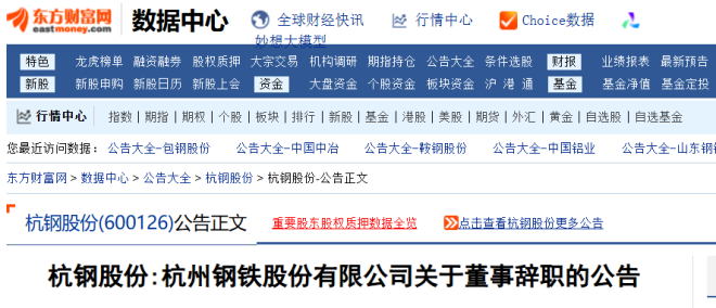 3月12日,杭鋼股份發布了《杭州鋼鐵股份有限公司關于董事辭職的公告》(以下簡稱《公告》)。