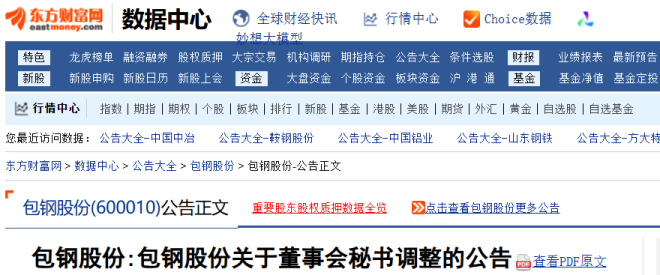 3月7日,包鋼股份發布了《包鋼股份關于董事會秘書調整的公告》(以下簡稱《公告》)。