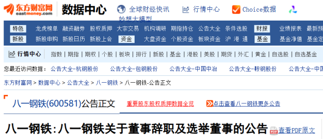 3月8日,八一鋼鐵發布了《八一鋼鐵關于董事辭職及選舉董事的公告》(以下簡稱《公告》)。