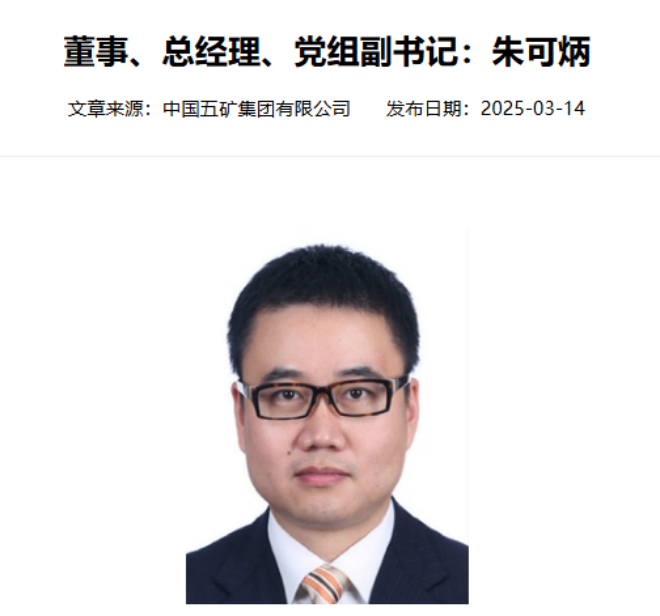 3月14日,五礦集團官網顯示,朱可炳現已擔任中國五礦董事、總經理、黨組副書記。此前,朱可炳擔任中國五礦黨組成員、副總經理,中國鹽湖工業集團有限公司董事長。