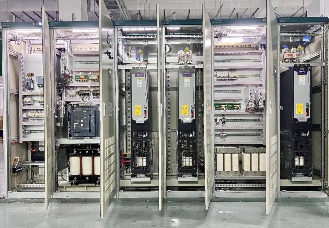 工程規模化應用公司自主研發的CERI系列高性能變頻器,覆蓋產線關鍵工藝設備,包括二切區、加熱爐區、冷床區、剪切區的大部分設備。CERI變頻器功率單元模塊化的設計幫助業主降低了維護難度,減少了備件種類,有效為業主節省了成本,提高了工作效率。變頻器的自由編程功能,使其可以靈活地適配于整條生產線設備的各類特殊需求,滿足了業主對設備控制的高要求。