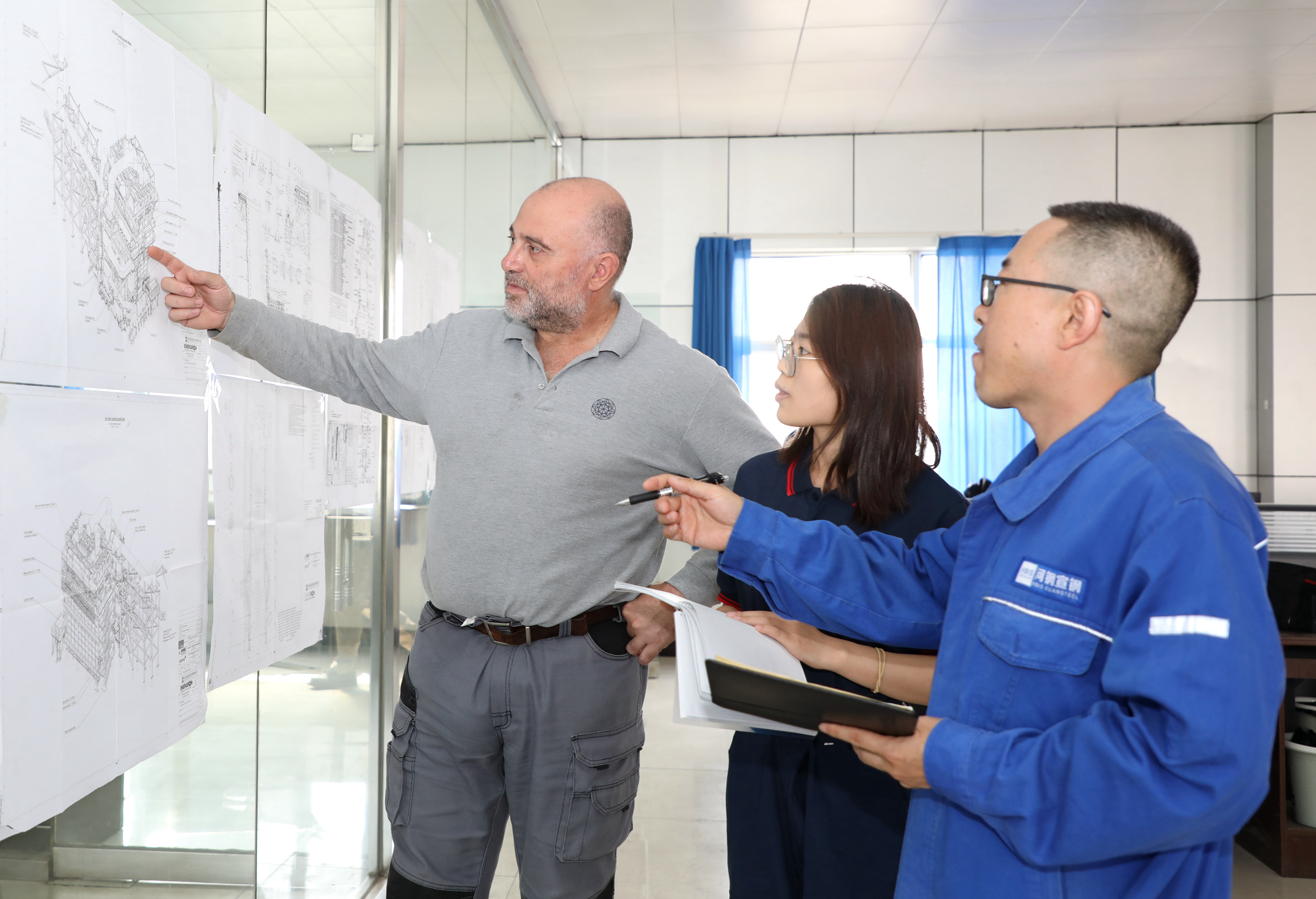 張宣科技技術人員正在與外方技術專家研究氫冶金技術工藝