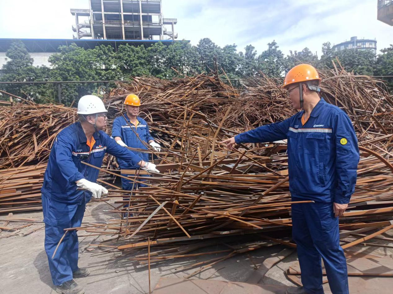 算明白了就干,張爭帶領作業區廢鋼班組人員采用機具、切割、篩選的方式深入廢鋼堆場中積極“撿寶”,先用挖機挑出含有色金屬廢鋼結構件,采用人工外力破壞結構件后,在通過小件切割剝離、手工篩選貴重有色金屬,剩余廢鋼進入廢鋼堆場進行加工利用,通過不間斷的揀選,以少積多,有效盤活了此類有色金屬資源。2024年上半年,廢鋼班組通過全員改善日、黨員突擊隊、黨小組攻關等活動,在廢鋼堆中揀選出貴重有色金屬鋁5.4噸、不銹鋼9噸,外銷經濟價值14.52萬元。