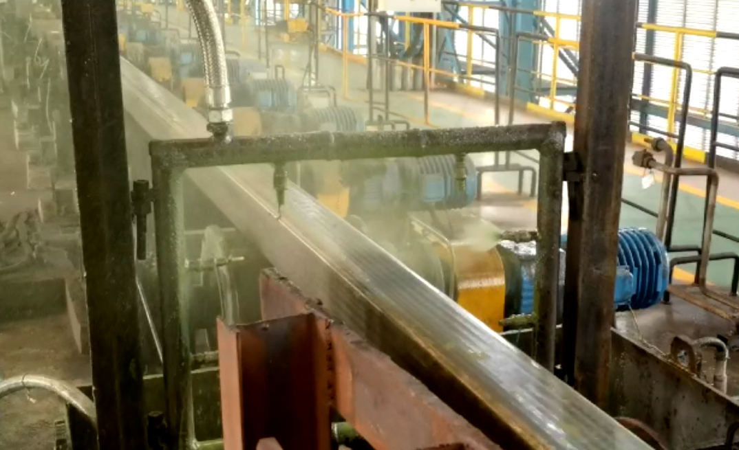 接著開始在線外進行制作,并在制作過程中根據碰到的問題進行修訂及調整相關尺寸,充分考慮了現場施工及后續設備維護的便捷性。他們利用高三線生產間隙時間,對噴涂設備進行現場安裝調整,并用濁環水進行噴涂測試。后續成功用涂料對入爐的鋼坯進行了實際噴涂。