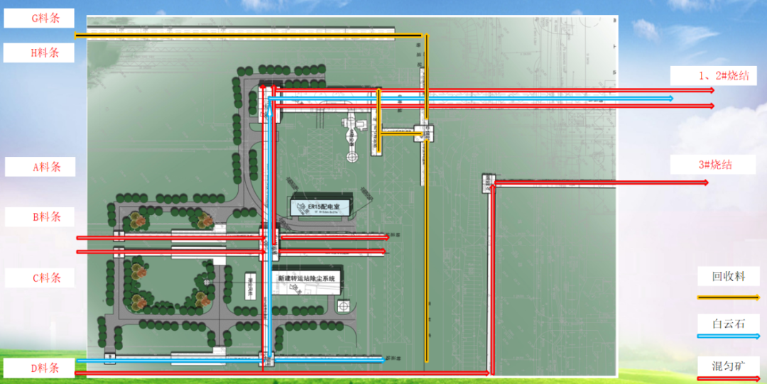 重慶鋼鐵作為馬跡山預混料接收終端,將結合現有原料場的條件通過配套接卸及供應能力改造項目的建設,優化原有工藝流程和設備裝備,保證優質的預混料直接供給燒結配礦倉進行燒結生產,減少煉鐵廠混勻加工環節。通過該項目的實施,對供料皮帶進行能力改造,皮帶設計的運輸能力將由1200噸每小時提升到1500噸每小時,大幅提升燒結生產用料供應,對進一步提升千萬噸鋼鐵產能規模下的煉鐵生產效能,保證高爐安全穩定高效順行具有重要的作用。