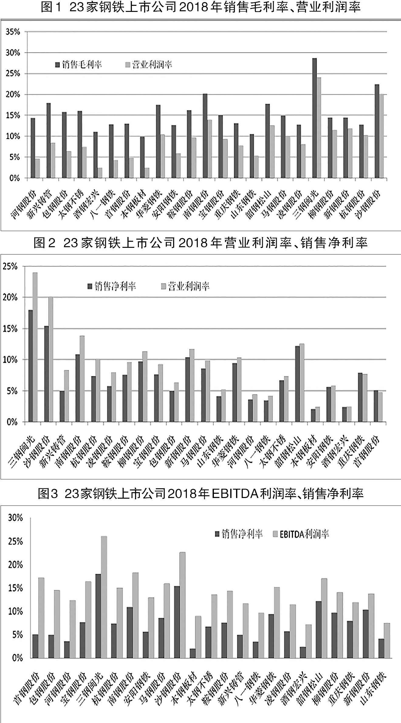 本文重點對23家鋼鐵上市公司(以鋼鐵長流程生產工藝為主)銷售毛利率與營業利潤率、營業利潤率與銷售凈利率、銷售凈利率與EBITDA利潤率的差異性進行分析,據此分析各企業間盈利結構的差異性,以及盈利質量的優劣。