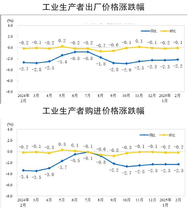 1月—2月份平均,工業(yè)生產(chǎn)者出廠價(jià)格比2024年同期下降2.2%,工業(yè)生產(chǎn)者購(gòu)進(jìn)價(jià)格下降2.3%。 (郭同炬)