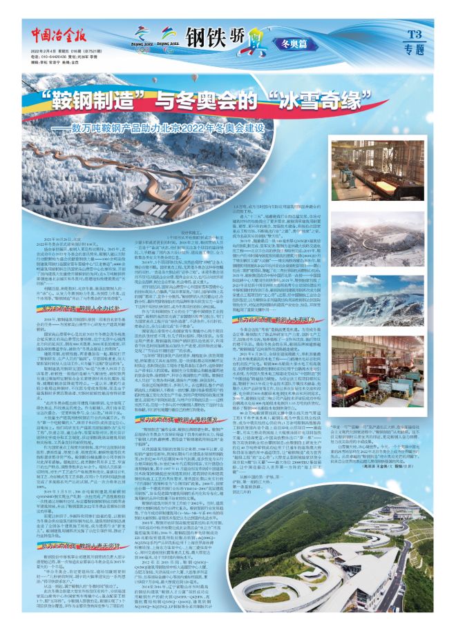 白雪鏡天地,冰心凝世界。今天,一個個充滿中國元素的冰雪場館將在2022年北京冬奧會上成為世界矚目的焦點。品質卓越的“鞍鋼制造”將在奧運光芒的照耀下,向來自全世界的奧運健兒展現鋼鐵強國的風姿。