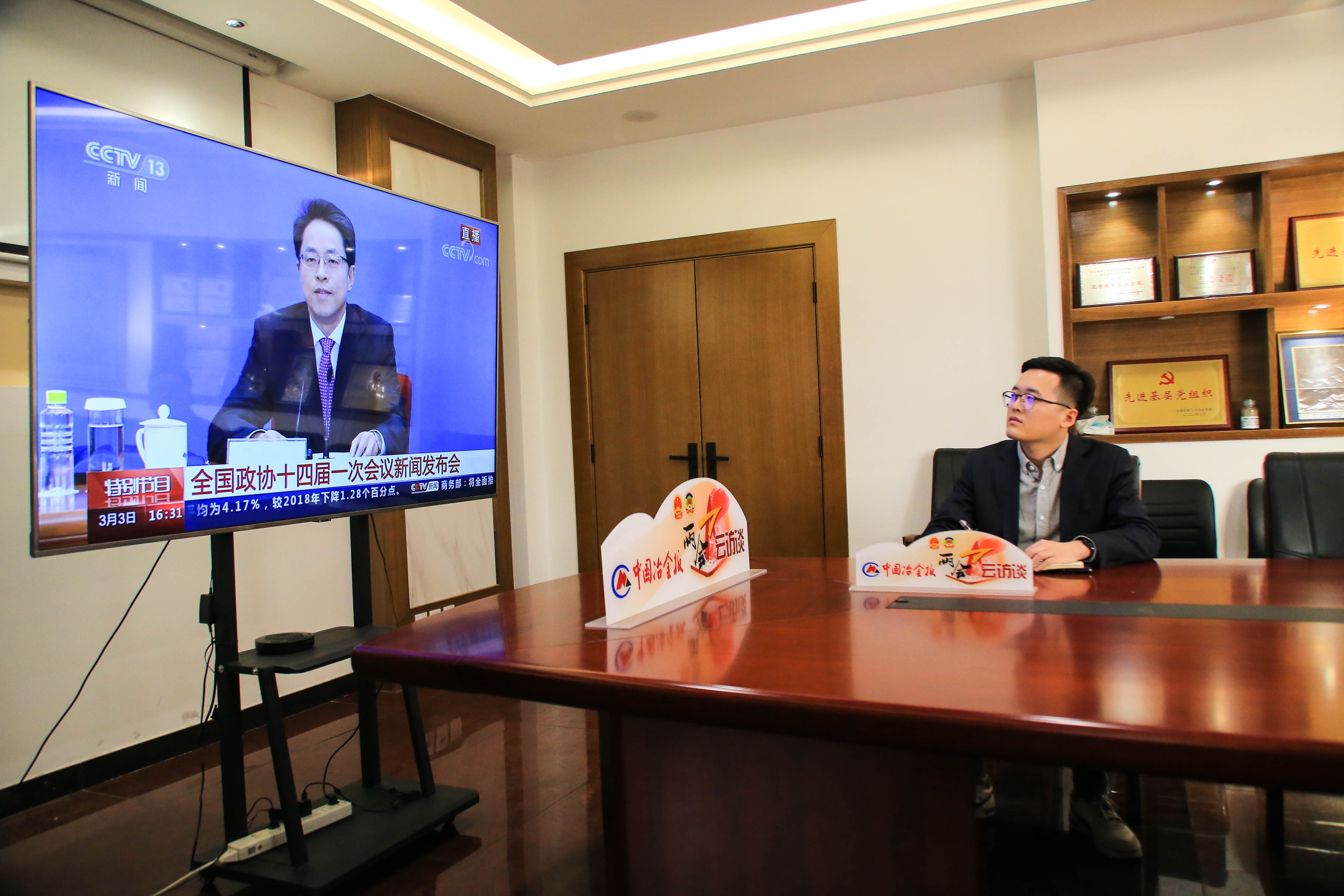 圖為本報(bào)兩會報(bào)道組記者在線上收看發(fā)布會直播