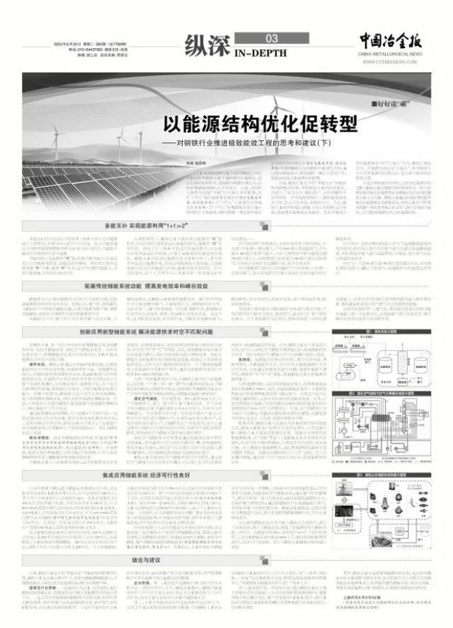 其四,鋼鐵企業應高度重視能源結構優化,充分利用鋼鐵余熱余能資源豐富的優勢,嘗試構建符合自身特點的低碳多能互補能源體系以及多能存儲的儲能系統,推動太陽能、綠電等清潔能源應用比例增加,實現綠色低碳高質量發展。