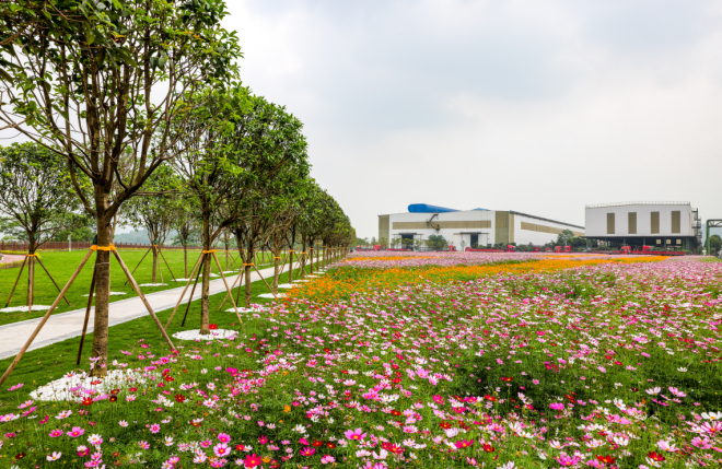 近年來,重慶鋼鐵出臺“重慶鋼鐵景觀提升規劃”,開展環境大提升專項工作,實施廠容廠貌網格化管理,針對廠區綠化進行了專業設計,修繕了鋼韻湖環湖步道,對榮譽林等區域進行了景觀提升改造。目前,該公司廠區綠化率已提升至35.2%。如今,人們走進重慶鋼鐵廠區可以看到很多獨具特色的綠色主題景觀,例如紅葉李香濤路、銀杏迎賓大道、香樟鋼韻大道等,可以時刻感受不一樣的“鋼鐵美”。