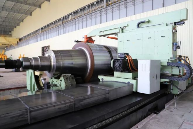 圖為山鋼日照公司爐卷軋制輥加工車削中。