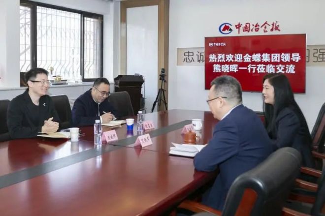 3月11日上午,金蝶軟件(中國)有限公司(以下簡稱金蝶中國)助理總裁、冶金事業部總經理熊曉暉,冶金事業部聯席總經理陳寶生一行到訪中國冶金報社,與中國鋼鐵工業協會副秘書長,中國冶金報社黨委書記、社長范鐵軍等圍繞鋼鐵行業發展形勢、鋼企數字化建設等內容進行了座談交流。