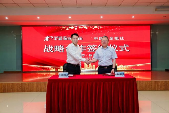 5月16日,中國冶金報社與中新鋼鐵在江蘇徐州簽訂戰(zhàn)略合作協(xié)議。中國冶金報社黨委書記、社長范鐵軍與中新鋼鐵集團黨委書記、副董事長李明坦代表雙方簽約。雙方圍繞鋼鐵行業(yè)運行趨勢、品牌建設等進行了深入交流。根據(jù)協(xié)議,雙方將在品牌塑造、新產(chǎn)品宣傳、新技術引進、宣傳片制作、信息咨詢等方面進行深入全面合作。中新鋼鐵集團執(zhí)行總裁王越;中國冶金報社社長助理兼經(jīng)濟發(fā)展中心主任、卓越品牌促進中心主任陳曉莉,經(jīng)濟發(fā)展中心視頻部主任姚翰昇等參加簽約儀式。