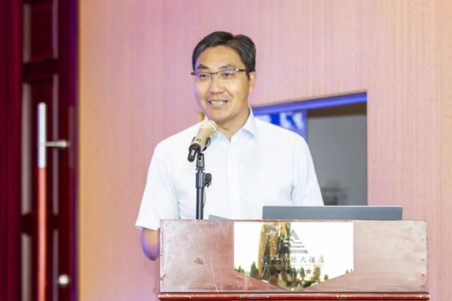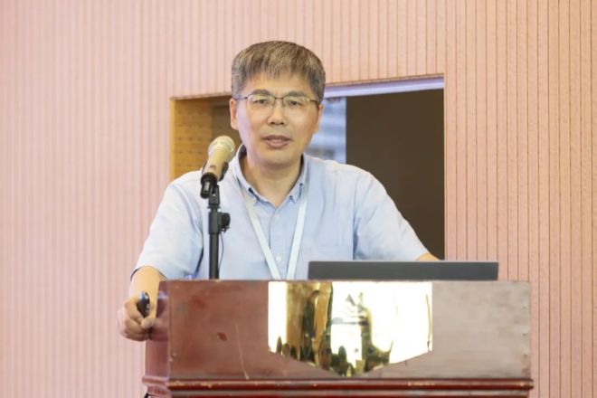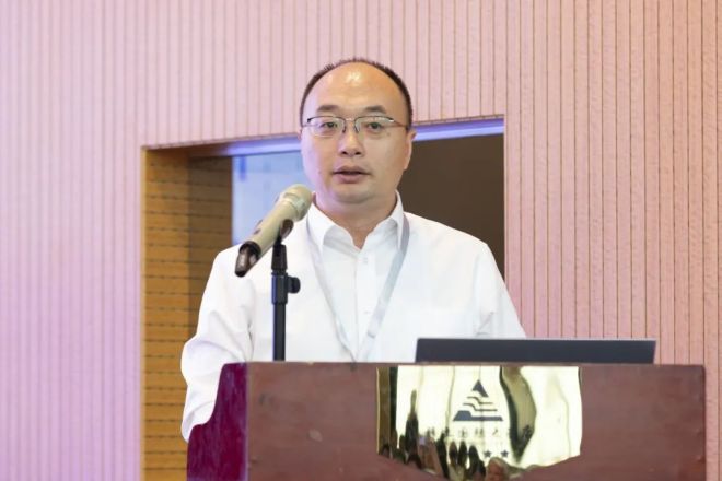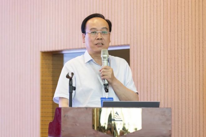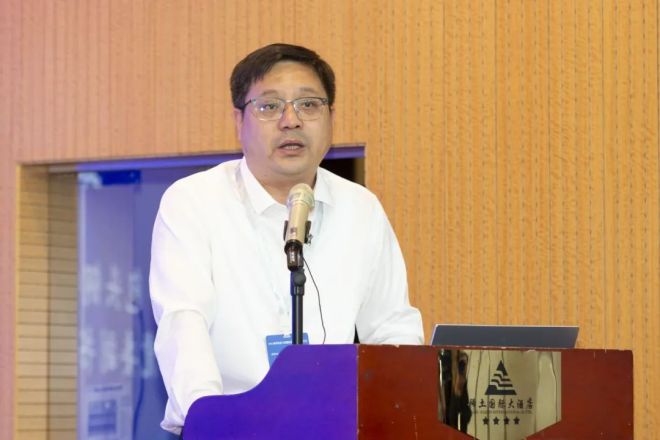 圖為內(nèi)蒙古科技大學(xué)教務(wù)處處長王軍做《守正創(chuàng)新,強(qiáng)化特色,構(gòu)建高水平教材建設(shè)與管理新體系》報(bào)告