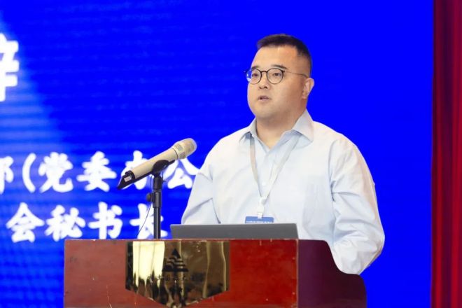 圖為內(nèi)蒙古科技大學(xué)稀土產(chǎn)業(yè)學(xué)院副院長柴軼凡做《稀土產(chǎn)業(yè)學(xué)院建設(shè)及產(chǎn)業(yè)人才培養(yǎng)》報(bào)告