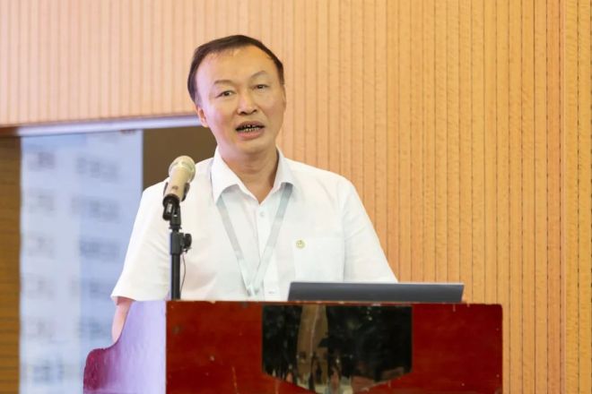 圖為天津工業(yè)職業(yè)學(xué)院院長、鋼鐵行指委委員孔維軍做《職教出海助推職業(yè)教育高質(zhì)量發(fā)展》報(bào)告