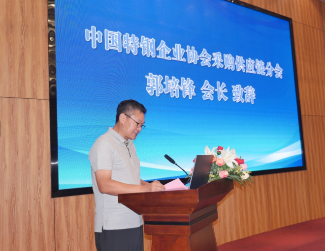 郭培鋒在致辭中介紹了中國特鋼企業協會采購供應鏈分會的設立情況和宗旨。采購供應鏈分會作為協會的重要組成部分,將有助于推動特鋼行業供應鏈的健康發展,促進產業鏈上下游企業的深度融合與合作,實現共贏共發展。他表示,分會還將有助于加強特鋼企業與供應商、客戶之間的溝通和交流,提升整個特鋼行業的供應鏈管理水平,為行業的持續發展注入新的活力和動力。