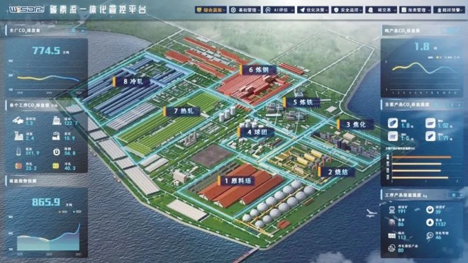 今年1月,中冶南方自主開發的WisCAS(WISDRI Carbon dioxide Abatement System)低碳系統,在新余鋼鐵實現了業內首次對硅鋼機組碳足跡的揭曉,并成功在湖北順樂實現對典型電爐短流程產品碳足跡的動態評定,為找準鋼鐵行業降碳著力點提供實實在在的數據支撐。WisCAS低碳系統通過實時采集鋼企生產過程中各類碳源數據以及排放因子,基于統一規范的碳排放評價方法,構建系統模型,實現企業級和工序級碳排放數據監管,并以碳素流圖譜形式對產品生產過程碳標簽進行可視化呈現;同時,還可通過歷史大數據分析模型開展碳排水平自評價,幫助鋼企及時掌握自身碳排放現狀和演變信息,為低碳規劃的制訂提供有力依據。