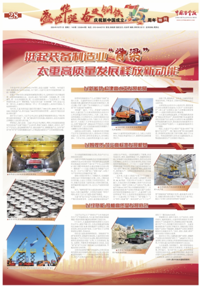 現在,太重在“產品+服務”“裝備+材料”“智能化產品開發”“一攬子解決方案”等方面突破明顯,多項研究成果打破了國外壟斷,填補了行業空白。科技創新的源頭活水在太重激涌迸發,匯聚成推動新質生產力發展的不竭動力。