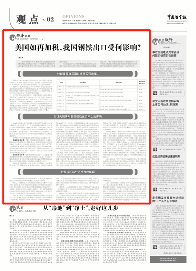 如果特朗普政府兌現競選時的承諾,對我國包括鋼鐵在內的商品加稅,顯然會對我國鋼材出口造成新一波沖擊。