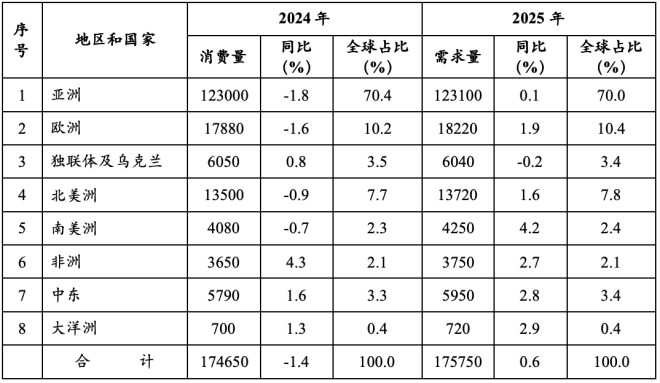 表2 2024年和2025年全球主要地區鋼材需求預測