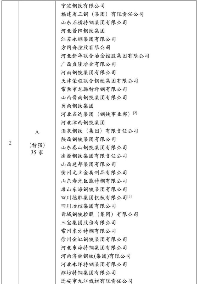 根據該院發布的中國鋼鐵企業競爭力(暨發展質量)評級(2024)榜單,中國寶武、中信泰富特鋼、首鋼集團、鞍鋼集團、河鋼集團、沙鋼集團、湖南鋼鐵集團、北京建龍集團、南鋼集團、敬業集團 、方大鋼鐵集團、上海德龍鋼鐵集團、中天鋼鐵、日照鋼鐵、柳鋼集團、新興鑄管、青山集團、包鋼集團18家鋼企被評為A+(極強)鋼企,另有35家鋼企被評為A(特強)級,41家鋼企被評為B+(優強)級。這是該院連續14年發布中國鋼鐵企業競爭力評級。(詳見表3)