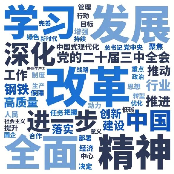 7月22日,鋼協黨委理論學習中心組組織集體學習黨的二十屆三中全會精神,提出要以三中全會精神為指導,圍繞“1231”行業發展目標,扎實推進“232”重點工作,確保黨的二十屆三中全會做出的決策部署轉化為鋼協系統和鋼鐵行業企業的生動實踐,為發展新質生產力、推進中國式現代化建設新征程貢獻更多鋼鐵智慧。7月份起,中國寶武、鞍鋼集團、首鋼、河鋼等鋼企先后召開黨委會議或組織專題學習培訓,傳達黨的二十屆三中全會精神,將深入學習貫徹黨的二十屆三中全會精神作為當前和今后一個時期的一項重大政治任務,并結合企業實際情況,以改革創新精神引領各項工作。11月14日—11月15日,鋼協黨委舉辦黨的二十屆三中全會精神學習班暨警示教育大會,號召要深入學習貫徹黨的二十屆三中全會精神,深刻領會全會重大意義和精神實質,切實把思想和行動統一到全會精神上來,把智慧和力量凝聚到落實進一步全面深化改革的各項任務上來。