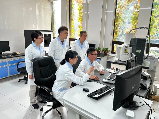 圖為研發(fā)人員討論分析新開發(fā)的產(chǎn)品顯微組織。