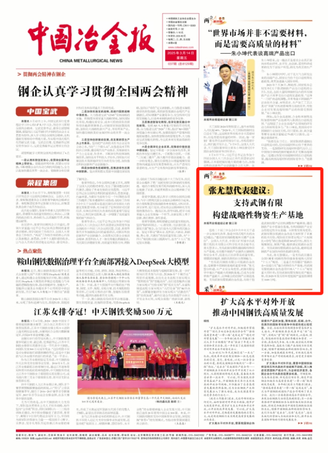 為此,張尤慧建議,一是支持武漢建設全國(國家)戰略性物資儲備基地納入國家“十五五”規劃。二是重點支持建設“低碳冶金+高端石化”融合的物資生產基地,將武鋼有限低碳冶金改造項目納入“十五五”規劃重大項目庫;支持武鋼有限發揮優質產能優勢,將2025年及后續年度粗鋼產量基數調增至1600萬噸。