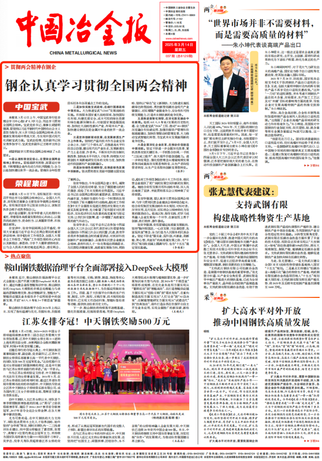 湖南鋼鐵將深入學習貫徹全國兩會精神,聚焦增品種、提品質、創品牌,持續發展新質生產力;加快數字化轉型升級,進一步推廣“鋼鐵大模型”運用,持續打造全流程、全系統的“智慧產線”“智慧鋼廠”;按時高質量完成超低排放改造和環保績效A級評價,實現“雙碳”目標和綠色轉型;持續推動科技創新和產業融合發展,聚焦鋼鐵主業,加快高端化、智能化、綠色化發展;做大做強集群產業,增強核心競爭力,提升國際化發展水平,打造一批核心產品和特色業務。
