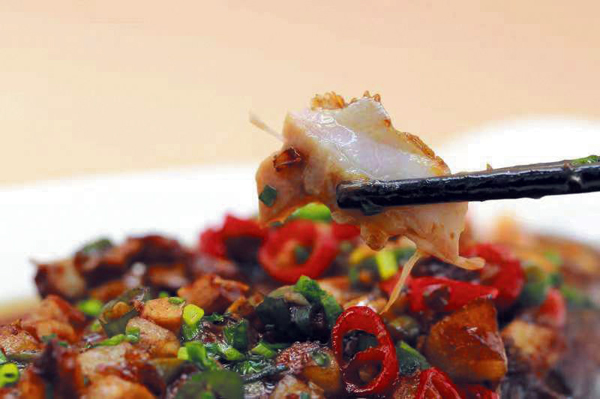 圖為馬鋼廚師制作的干燒大黃魚。(馬力生 攝)